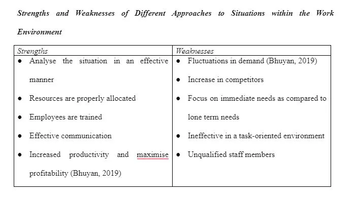 Strengths and Weaknesses of Different Approaches to Situations within the Work Environment