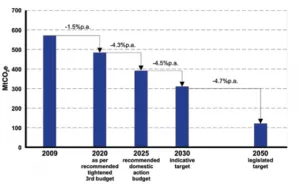 Figure 2: the reduction rate required of emissions of green-house gases; 2009 to 2050 (CCC, 2010)