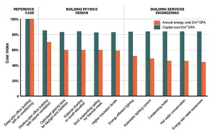 The cost of sustainable building alternatives can also develop a barrier to the widespread utilization of sustainable procedures in designing buildings. A general conception is that general public would not demand the sustainable practices unless the procedures save them the cost of construction. It has often been seen that the real expenses of constructing a sustainable design are not as high one might expect them to be, as shown from the research conducted by the Energy Efficiency Best Practice Programme, figure 6.