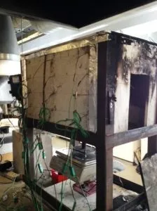 Four different experimentations were completed in this research, details of which are presented in the Chapter 4. All the four experiments were conducted under the same condition, except for variable supply of air. The aim of the experiment was to analyze the behavior of fire using varying conditions with respect to the supply of air. As discussed in details previously, the chemistry of combustion is fundamentally dependent upon the air, as it is the primary reactant in the burning process. The figure below shows the equipment used for these analyses;