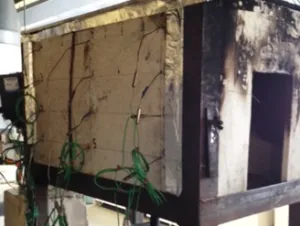 In order to study the burning process, combustion of a specific material was analyzed using an enclosure in a form of box, which was open from one side. The fire was initiated / started in the middle of the combustion box, which had dimensions of; length 635 mm, width 375mm, height 455 mm, and consequent volume of 0.108347 m3 (3.8 ft3).