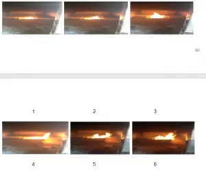 Similar to the experiment 3, the results show that the increased velocity used in the experiment produces enhanced intensity of flames, and with high turbulence effect the direction of flames are inconsistent. The results further show that the width as well as the height of the flames also has increased due to this effect.