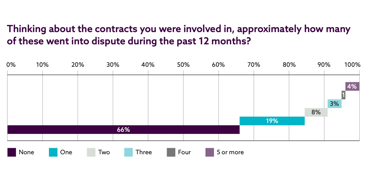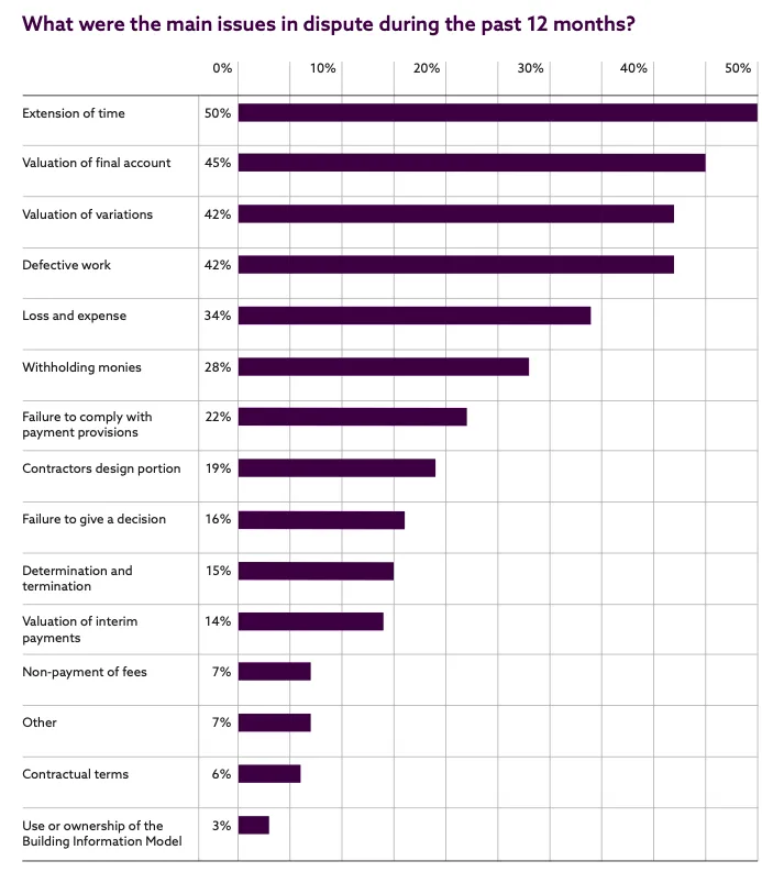 Supporting this notion, the National Construction Contracts and Law Survey 2018 findings reveal that, over 12 months between 2017 and 2018, 19% of contracts experienced at least one dispute, with 4% encountering four or more disputes. This underscores the continued prevalence of disputes in the construction sector (Malleson, 2018).