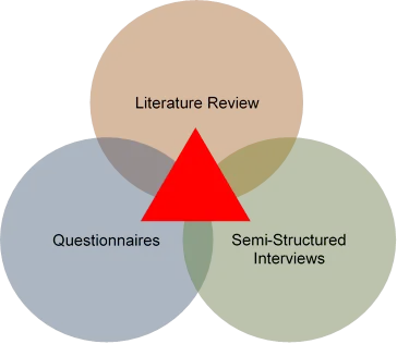 Triangulation is a research application of two or more data collection methods to ensure the viability of data and attenuate the flaws with the associated methods (Naoum, 2013). It draws upon information from different sources and people’s perspectives, i.e., literature reviews, questionnaires, and interviews, to aid in producing robust data and mitigating any flaws with each method. Using various data collection methods (figure below) increases the likelihood of any inconsistency within the data being identified; therefore, the data represents real-world opinions and has aided in robust conclusions.