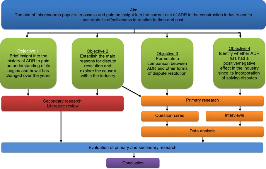 Within the early stages of research, there were limitations recognised and considered. First was the limited accessibility of current research to form the secondary data within the literature review. This proved a lengthy and difficult process, with an element of leeway that allowed for more aged sources. The author also discovered that more recent literature was obtainable by widening the global search criteria, so this was utilised. Furthermore, acquiring reasonable data collection for the questionnaires proved a difficult process with a limited amount. This is due to the specialist sector ADR falls into and the accessibility to participants with the desired skills and knowledge required to fulfil the needs of the aims and objectives.