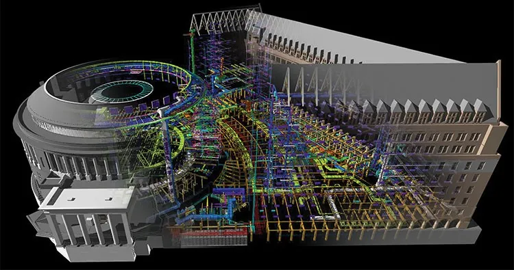 - Integration of the data into a computer-aided system to analyse all the structural elements of the buildings. This enabled the stakeholder to precisely review the requirements of the building in terms of the changes required, materials to be procured, generate bills of quantities, and in ensuring that the necessary materials are fabricated as per the original fabric requirements of the structure. It also ensured that offsite manufacturing of geometrical elements is exported to its primary design model