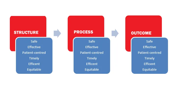 Figure 1- Combination of Donabedian' Model of care and IOM's 6 dimensions of care
