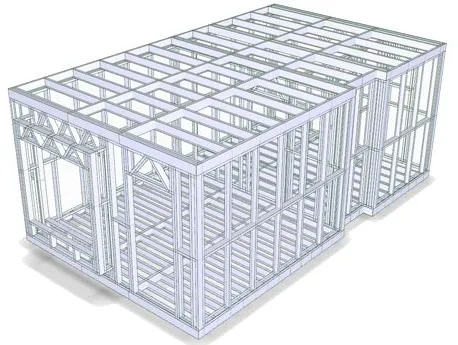 Figure 8: Cold-formed steel structure for a two-storey building (Naked Frames Ltd, 2013)
