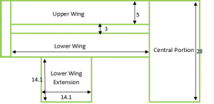 Following is the given Layout of the proposed building with all dimensions in meters. The site has been divided into 4 sections, that are (1) Central Portion, (2) Upper wing, (1) Lower wing and (4) Lower wing extension (as shown in Fig-1 below)
