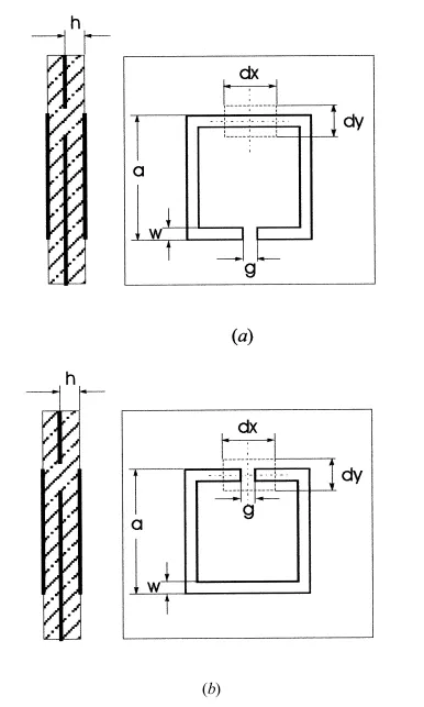Fig.2: Two microstrip open-loop resonators, (a) Coupled Magnetically, (b) Electrically.
