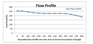 The results obtained from the experimental procedures for the flow profile is given in the table 1 below;