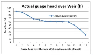 Figure 8: Actual gauge head of stream over the weir for 90 mm head