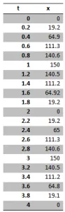 Calculated Values of displacement against Time are;