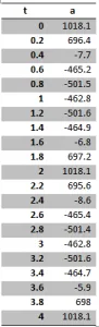 Calculated Values of acceleration against Time;