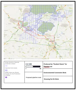 The aim of this paper is to identify the exact pipeline route within the route corridor provided by Pipealot Ltd following their initial feasibility study. The study will look into environmental constraints associated to the identification and construction of the exact route on the map provided by Pipealot Ltd.