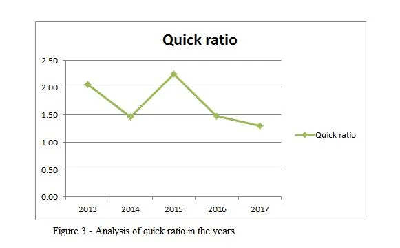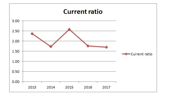 The liquidity trend of the company has been inconsistent, showing a decline from 2013 to 2017. This irregularity is attributed to Intel's current asset and liability fluctuations. Despite this, the current ratio remains consistently above 1 throughout the considered periods, indicating that the company is well-positioned to meet short-term obligations and pay creditors. This stability is evident in the current ratio graph (refer to Figure 1).