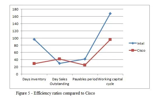 Comparing efficiency ratios with Cisco for 2017, Intel exhibits a lower debtor collection period, while all other ratios are higher than Cisco, as illustrated in Figure 5.