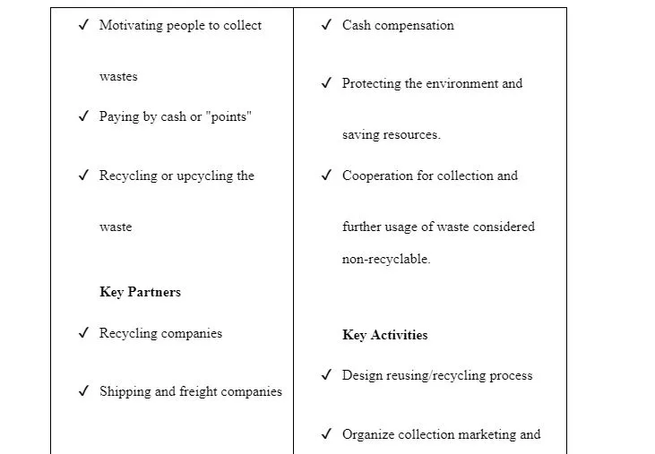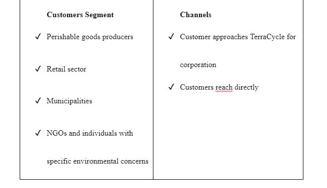 Leading consumer product companies, cities, facilities, and retailers are partnered with TerraCycle to reprocess packages and products, from cigarette butts to dirty diapers that would end up burnt or landfilled otherwise. TerraCycle is working with top product companies to integrate products that are difficult to recycle, such as ocean plastic. It is one of the fastest-developing companies and is the world’s leading company in using and collecting non-recyclable waste (Li, 2015). With the help of innovation management models, TerraCycle has implemented a business model canvas to advance its business in the market, as shown in the table.