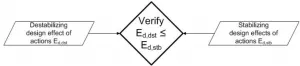 Limit state EQU does not occur when the destabilizing design effects of actions Ed,dst are less than or equal to the stabilizing design effects Ed,stb