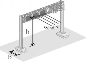 A motorway gantry can be considered as an example in this case as shown in figure 3 (Meier, 1992). The structure is subjected to the horizontal design wind load which is
