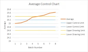 (b): The average control chart is plotted for all 8 samples batches;