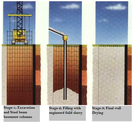 Figure-5-: Basement construction procedure (source: edited, lecture notes, 2013)