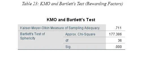 Table 23: KMO and Bartlett's Test (Rewarding Factors)