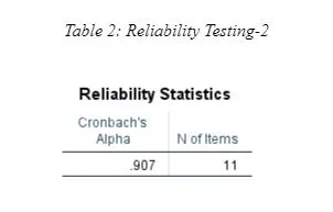 Reliability testing is performed as the initial step for analysis. Since the questions related to all the factors were based on the Likert scale, Cronbach Alpha has been used to determine the reliability of the 5-point Likert scale. The result of all the factors except for personality factors has been mentioned as follows: