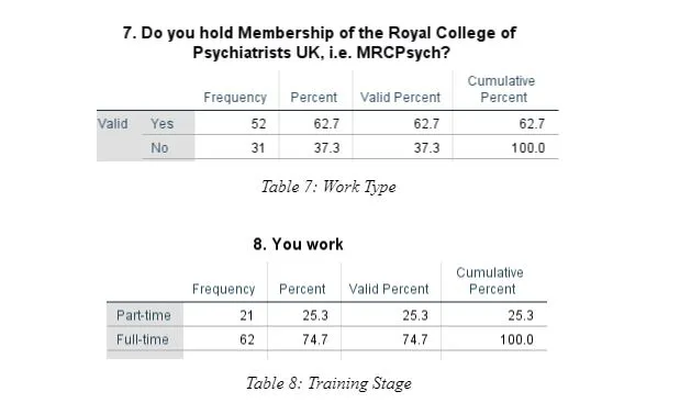 The following research aims to evaluate the influential factors that may affect the decision of psychiatry trainees to choose psychiatry as a medical speciality. The research underpinned the case of post-graduate trainees residing in Scotland. A questionnaire was designed and sent to 278 participant trainees to perform a detailed survey and collect data. Nevertheless, only 83 responded to the assertion. Hence, the response rate has been calculated to be 30%. Considering this aspect, the following section is dedicated to meticulously analyzing the factors.