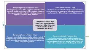 The figure presented below represents the porter’s five forces for Kaspersky in the UK market. It can be observed that there is a fierce competition in the software industry of the UK such as McAfee, Norton and e-Set which has entered the market aiming towards gaining market share and reaching the scope of software market.