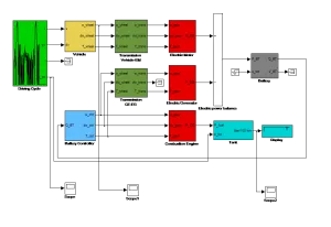 Simulation and modelling are indispensable before prototyping and analyzing hybrid vehicles, especially when dealing with innovative hybrid power train controllers and configurations. This becomes even more critical when testing novel energy management systems and configurations through computer simulations, offering advantages such as cost reduction, design efficiency, and increased component life cycle. Computer simulations also provide a safer, more cost-effective alternative to executing dangerous, strategically undesirable, complex, and expensive tests and studies. Addressing concerns related to the dependence of power trains on various control strategies is another significant advantage computer simulations offer.