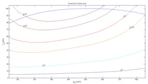 Consumption maps: The traditional unit used by the manufacturers to describe the fuel consumption rate is g/kWh since it is a convenient way to compare the efficiency of engines. This method is quite useful when the engine is producing power but not when the engine is dragging.
