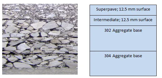 The fill material used for the road construction is without any organic material and has the desired/designed stress bearing ratio and minimum plasticity index. The aggregate base mixtures is generally comprised of a mixture of sand and very fine gravel, which helps to maintain the bottom surface free from any organic matter growth such as plants and serves as lower stratum drainage.